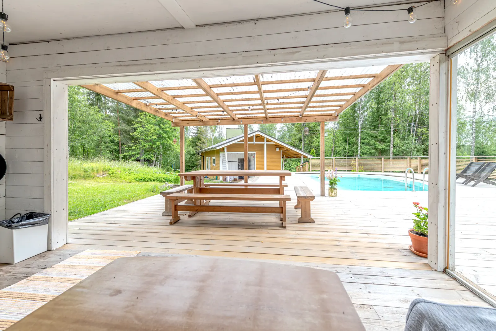 - 2022: Uusi terassi uima-altaan ja kesäkeittiön ympärille • Nukkuma-aitta pihalle • Astianpesukoneliitäntä keittiöön