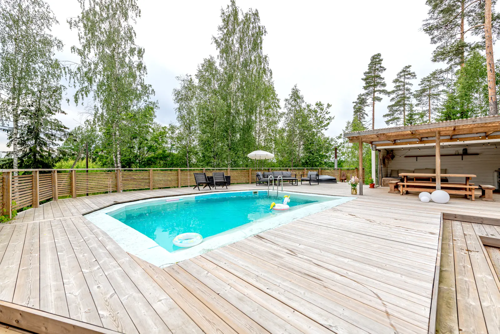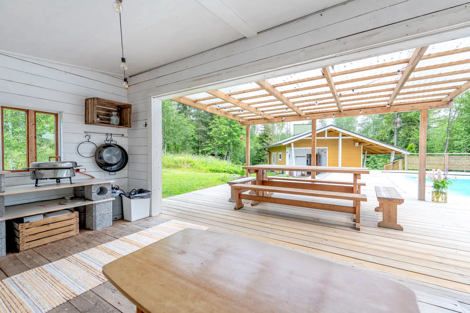- 2022: Uusi terassi uima-altaan ja kesäkeittiön ympärille • Nukkuma-aitta pihalle • Astianpesukoneliitäntä keittiöön